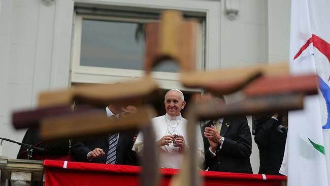 The Olympic Legacy Cross used at the Joshua Youth Camp during the London 2012 Olympics was blessed by Pope Francis at the recent World Youth Days in Brazil.