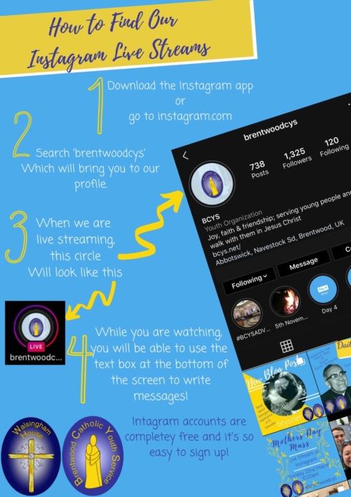 The Mass will be streamed live on the Instagram by the Brentwood Youth Service. Follow these steps to join in: