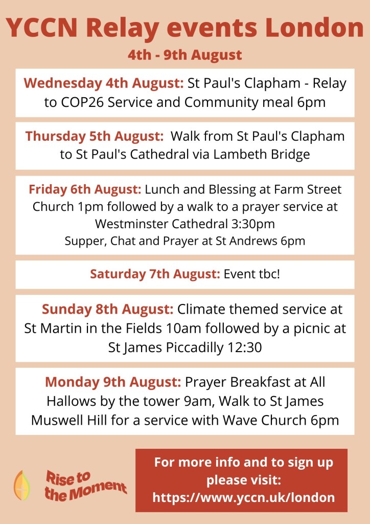 The Young Christian Climate Network Relay, walking from the G7 in Cornwall to COP26 in Glasgow for climate justice, reaches London today. There is still time to decide to join in with one or more or the events taking place in the capital during the Relay Residency in London from 4th-9th August. Follow the links for full details. We’d love to see you!