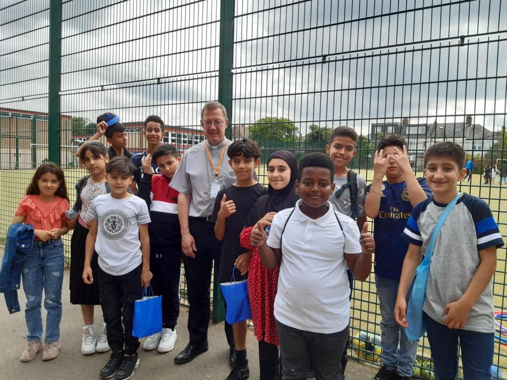 On 1st August, Bishop John Sherrington visited the Syria Summer Camp, an educational, fun and therapeutic event for children from refugee backgrounds hosted by Newman Catholic College and supported by Caritas Westminster. Now in its sixth year, it was initiated in 2016 by Amanda Wooster as a summer activity for refugees who came from places such as Syria and Afghanistan. Bishop John shares his experience of the visit.