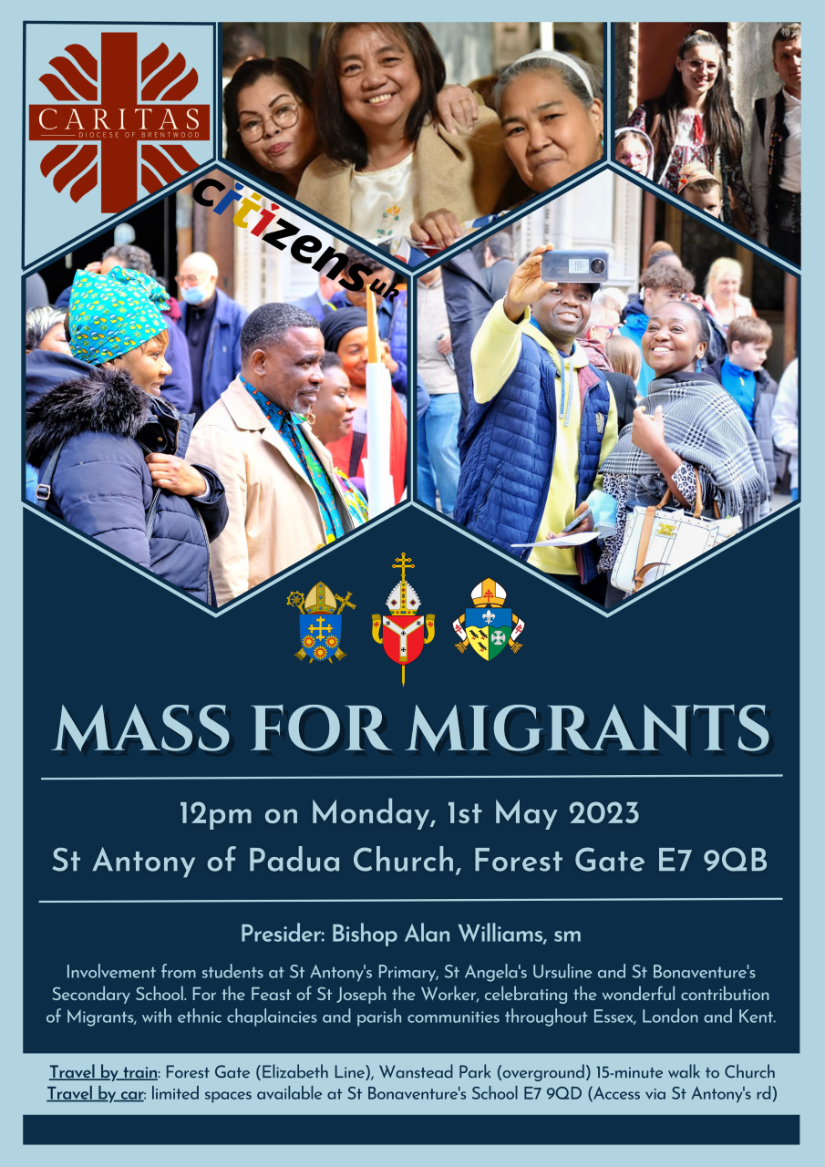 The Dioceses and Ethnic Chaplaincies of Brentwood, Southwark and Westminster invite you to a celebration of the annual Mass for Migrants at St Antony of Padua Church, Forest Gate, E7 9QB.