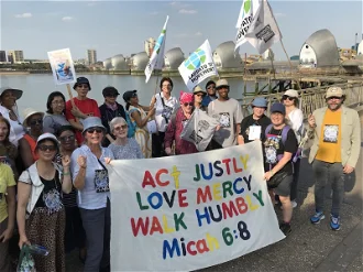 It included several Medical Mission Sisters and five Buddhists who found the pilgrimage experience very moving. The group had been reflecting on Pope Francis words: “How can we contribute to the mighty river of justice and peace in this Season of Creation? … We must do this by resolving to transform our hearts, our lifestyles, and the public policies ruling our societies.” These words inspired reflections at their stopping points.