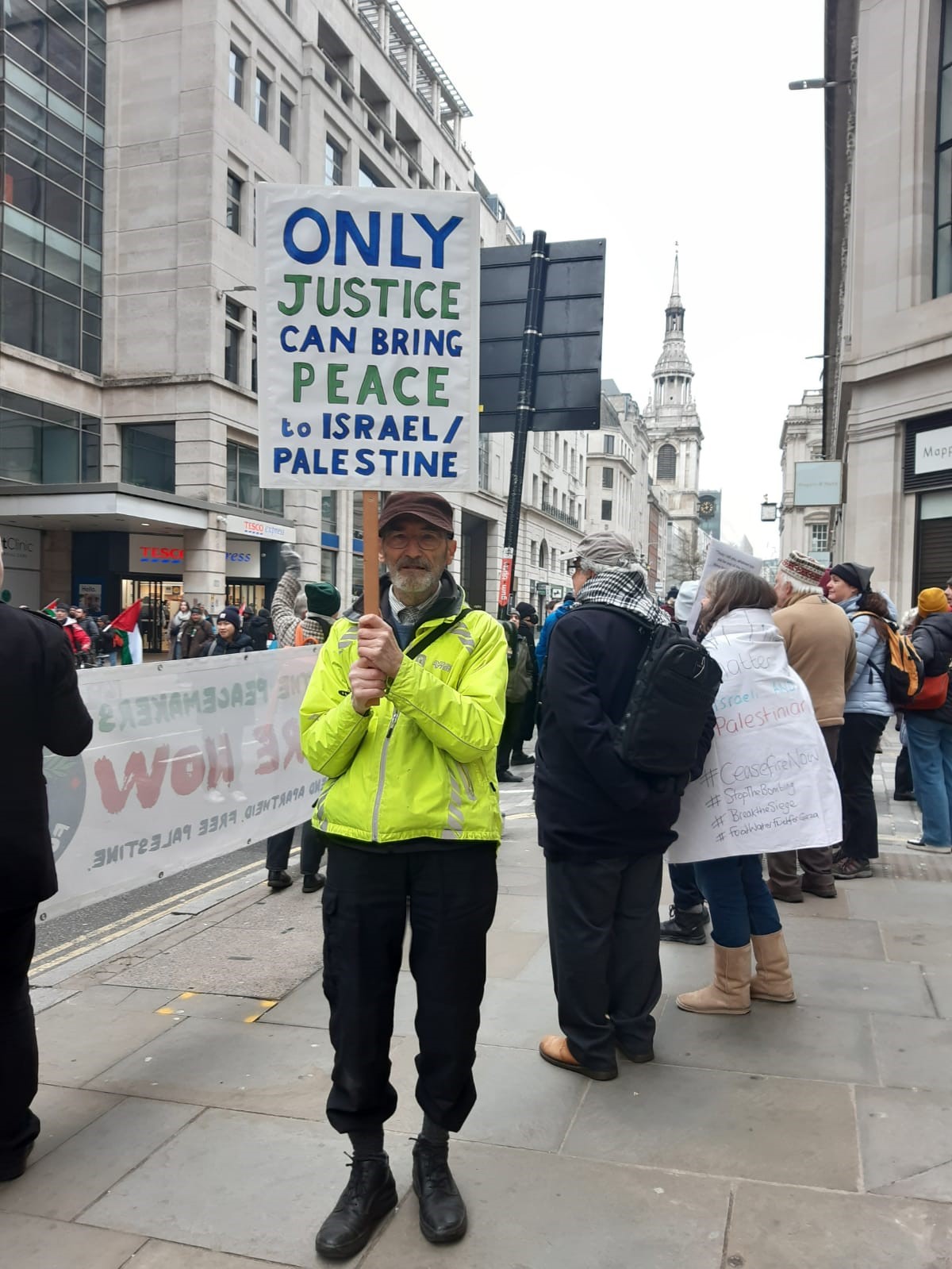 Westminster Justice and Peace joined the Christian bloc, co-ordinated by Christians For Palestine, which included banners from Pax Christi, the Church of England, Quakers, the Columbans, London Catholic Worker, Passionists, Holy Land Trust, Fellowship of Reconciliation, Anglican Pacifist Fellowship, Sisters of St, Joseph of Peace and many more. We walked next to the Jewish bloc, which included hundreds of individuals and members of Na’Amod, International Anti-Zionist Network, Jews for Palestine, Torah Jews, JVL and other Jewish peace groups.
