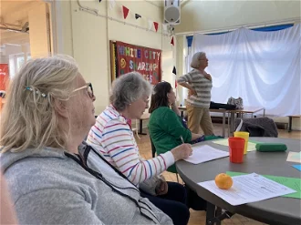 After shared refreshments, a presentation in the hall was given by Hilda and Fr Richard, highlighting parish advocacy work for Justice and Peace. In 2021, during the UN’s COP26 on Climate in Glasgow, a ‘Parliament in the Parish’ was organised involving local MP Andy Slaughter. He was there again more recently on 17 June for hustings of the Hammersmith and Chiswick Constituency and hosted by Hilda. Around 80 people attended, and issues raised included Cost of living, Disability, and Assisted Dying.