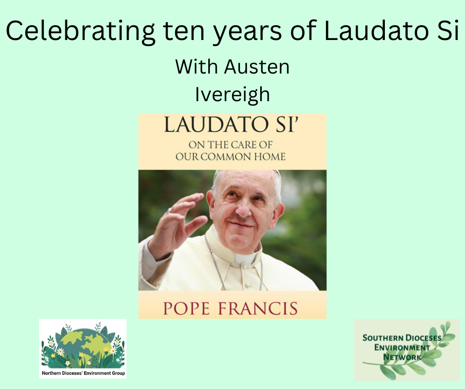 The Northern Dioceses Environment Group and the Southern Dioceses Environment Network are combining to present this evening of celebration for the 10th Anniversary of Laudato Si’ – On the Care of Our Common Home on Thursday 8th May 2025 online from 7.00-9.00pm.