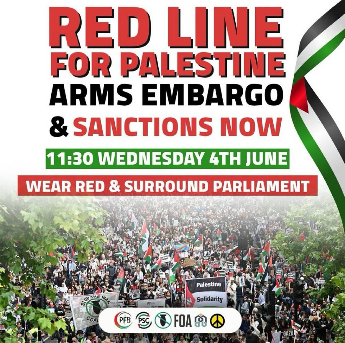The organisers say: “Last week, the UK government announced a suspension of trade negotiations with Israel and sanctions on a limited number of individuals. It is too little and too late, especially given that Israel has clearly stated, and has shown over the past days, that it intends to deepen its genocide. However, as Israel openly uses starvation as a weapon of war, cracks are appearing in the political establishment. Now is the time to put pressure on the Government, MPs and Parliament to act.