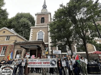 A record number of Christians from different denominations – clergy, religious and laypeople – gathered for prayers at St Anselm & St Cecilia’s Catholic church in Holborn on Saturday 5th October 2024, before joining the 20th National March, from Russell Square to Whitehall, to appeal to the government to stop arming Israel and demand a permanent ceasefire in Gaza, Lebanon, Yemen, Israel and Iran.