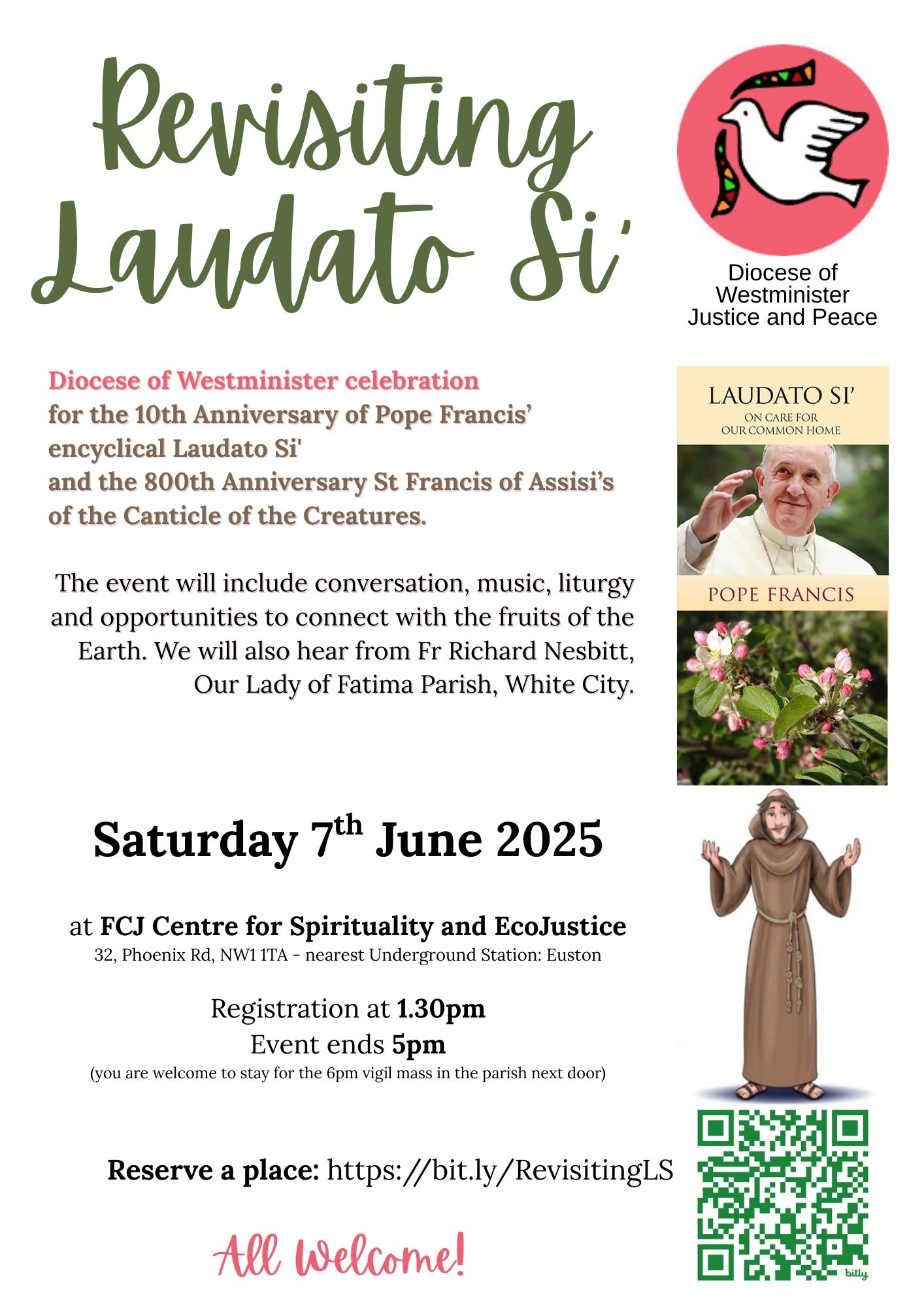 All are welcome to join us for this Diocese of Westminister celebration to mark the 10th Anniversary of the papal encyclical Laudato Si’ and the 800th Anniversary of the Canticle of the Creatures.