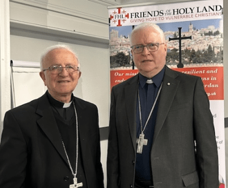 Bishop William Shomali, Patriarchal Vicar for Jerusalem and Palestine, gave a moving account on the situation of Christians in the Holy Land at Bloomsbury Baptist Church in London on Monday. The ecumenical event was attended by representatives from many denominations, including Bishop Jim Curry from RC Diocese of Westminster and Bishop Mike Royal, General Secretary of Churches Together.