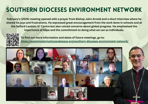 Bishop John Arnold, Bishop of Salford, was the guest speaker at the second meeting of the Southern Dioceses Environment Network, held at lunchtime today, 14th February 2022.