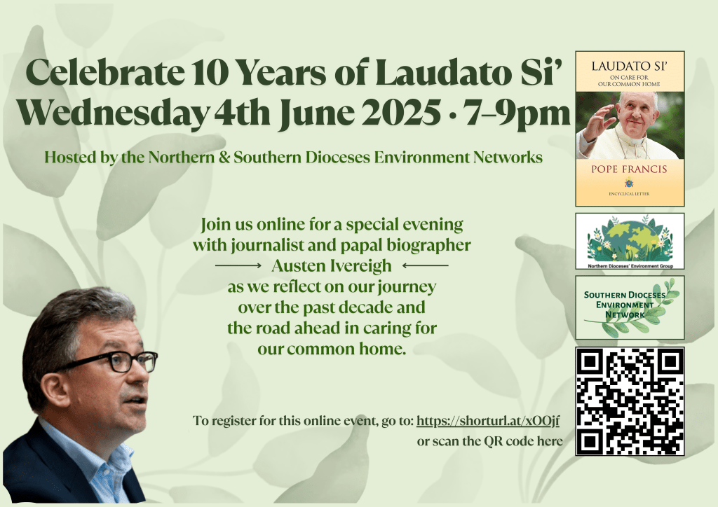 A very special combined event was hosted by the Southern Dioceses Environment Network and the Northern Dioceses Environment Group on 4th June 2025 to mark the tenth anniversary of Pope Francis Papal Encyclical ‘Laudato Si’ – On the Care of Our Common Home (2015).